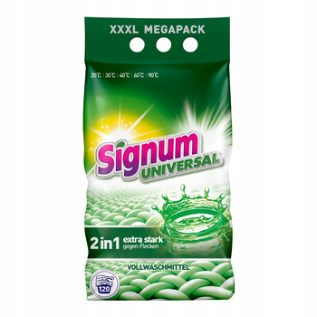 - Proszek do prania SIGNUM UNIVERSAL 10 kg (120 prań) to produkt, który zaspokoi potrzeby najbardziej wymagających użytkowników.